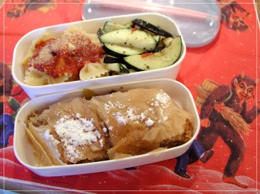 Well, I'm vegetarian so it's not Schnitzel but garlic-roasted zucchini with noodles (a staple food!). But the apple strudel is there!